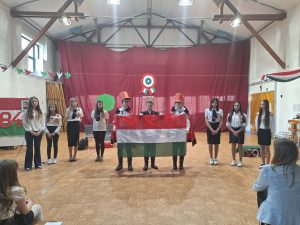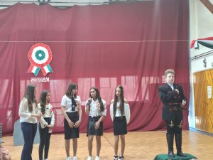 Iskolánk adott helyet a márc. 15. alkalmából rendezett település szintű ünnepségnek. Kiss Ferenc polgármester úr ünnepi gondolatait, iskolánk történelem szakos pedagógusának, Csintalan Erikának a történelmi eseményeket felidéző beszéde követte, majd iskolánk 7. osztályos tanulói adtak nagyon színvonalas irodalmi műsort, melyet Kovácsné Zazravecz Ildikó osztályfőnök tanított be. Az iskolai néptánc-csoport fellépése nagyon nagy sikert aratott. Táncukat Szabó Zoltán, néptánctanár állította színpadra. Majd a legkisebbek, az óvodások műsora örvendeztette meg az ünneplőket. Végül pedig az egész ünneplő közönség kivonult az önkormányzat épülete előtt felállított Kossuth-szoborhoz, ahol a helyi Nyugdíjas és Hagyományőrző Egyesület tagjainak nótacsokrát követően, koszorúzás következett.
